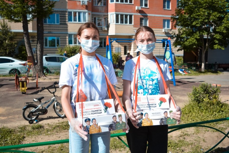 Поучаствовать в «Красной Гвоздике» может каждый - в парках и многолюдных местах Волонтёры Победы с боксами предлагают принять участие в акции. Достаточно опустить пожертвование и получить взамен символ памяти - значок красной гвоздики.