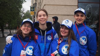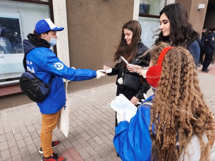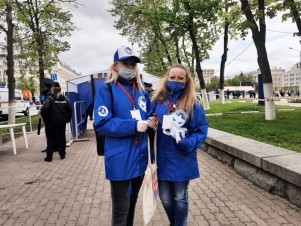 Волонтёры движения помогали организаторам в навигации участников Парада Победы, раздавали средства индивидуальной защиты присутствующим, вручали главный символ Победы - Георгиевскую ленточку.
