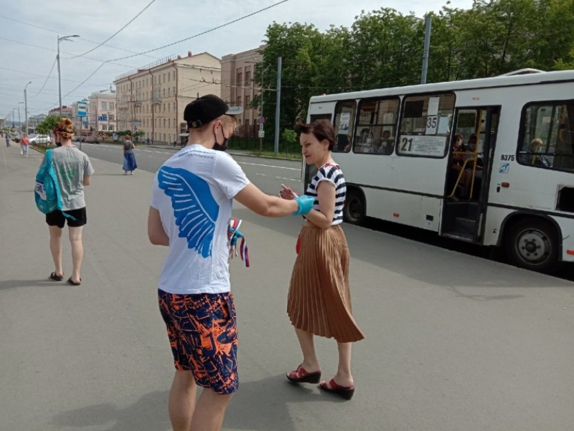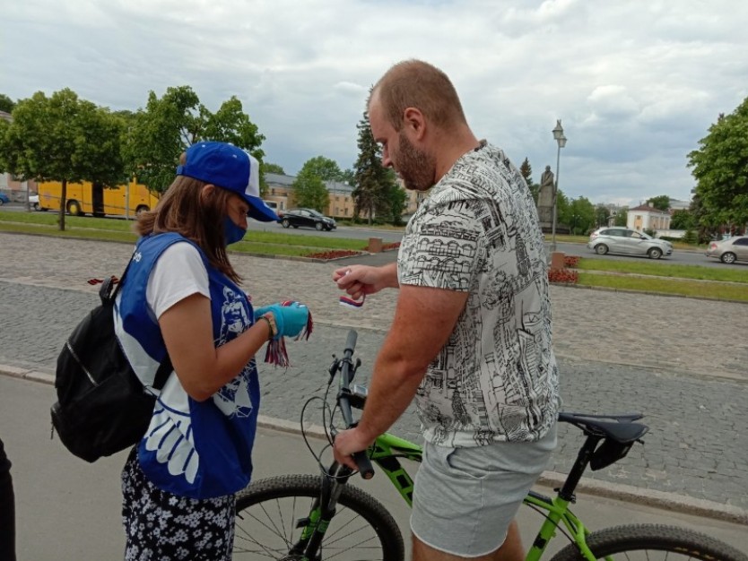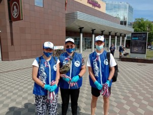 12 июня на центральных улицах города Петрозаводска Волонтеры Победы провели акцию «Российский триколор». Волонтеры поздравляли горожан и гостей города с праздником «Днём России» и вручали ленточки триколора. В этот день в 1990 году первый Съезд народных депутатов РСФСР принял Декларацию о государственном суверенитете России, в которой было провозглашено главенство Конституции России и её законов. Важными вехами в укреплении российской государственности стало принятие нового названия страны — Российская Федерация (Россия), новой Конституции, отражающей новые политические реалии, государственных символов.