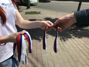 12 июня, в День России, на территории Воронежской области состоялась акция «Триколор», в рамках которой Волонтеры Победы раздали гражданам ленточки-триколоры и рассказали об истории флага Российской Федерации.