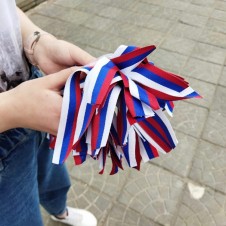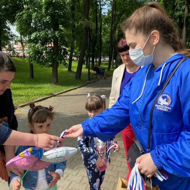 Сегодня, в честь праздника Дня России, Волонтеры Победы раздавали ленты-триколор.