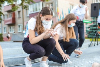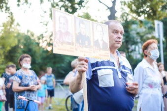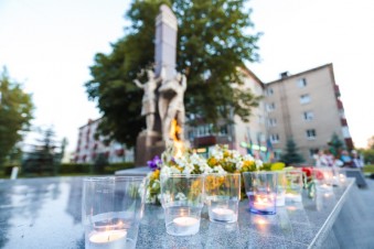 На мероприятии прошла минута молчания. Жители города возложили цветы к Вечному огню.