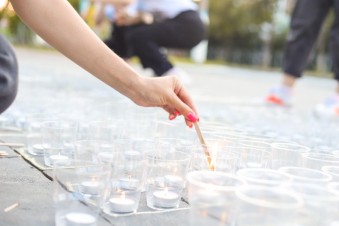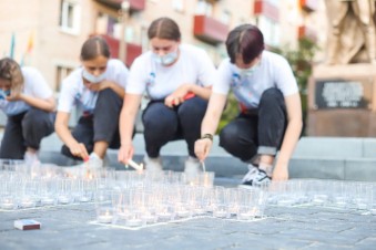 Из свечей добровольцы выложили надпись «Шатура помнит».