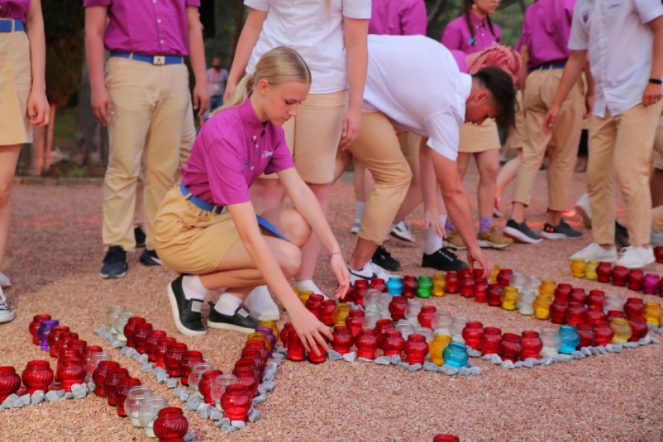 В «Артеке» вспомнили подвиг крымского партизана Вити Коробкова. Его портрет ребята выложили из морской гальки на знаковом месте Международного детского центра – Соловьёвской поляне. Воспитанники зажгли более 2,5 тысяч свечей и почтили память героев Великой Отечественной войны минутой молчания.