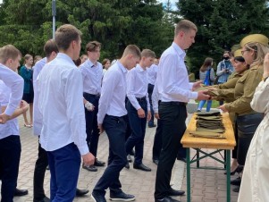 В ходе памятной акции активисты Российского движения школьников представили присутствующим театрально-историческую мини-реконструкцию «С выпускного на фронт» в память о выпускниках, ушедших на фронт в 1941 году.