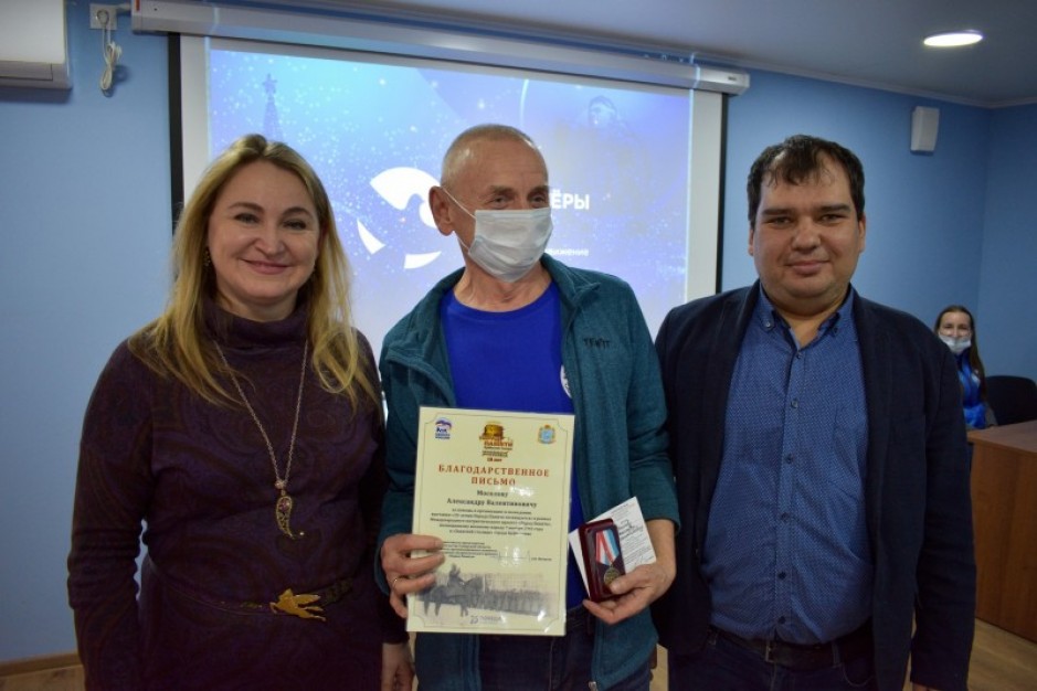 На торжественном мероприятии памятные медали самым активным волонтерам выставки «10-летию Парада Памяти посвящается» вручила исполнительный директор Российского военно-исторического общества в Самарской области, руководитель штаба по подготовке и проведению Парада Памяти Инна Анатольевна Жичкина.