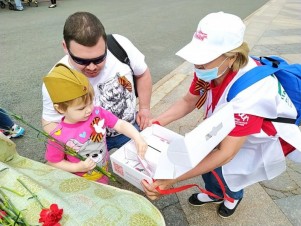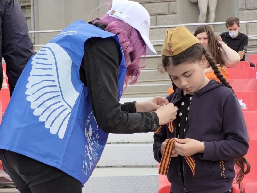 В Самаре добровольцы помогали в навигации у контрольно-пропускных пунктов, вручали на всех трибунах георгиевские ленточки. А в скверах и у входов на площадь «серебряные» волонтеры провели акцию «Красная Гвоздика».