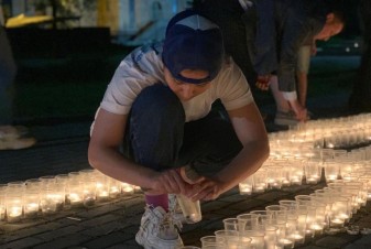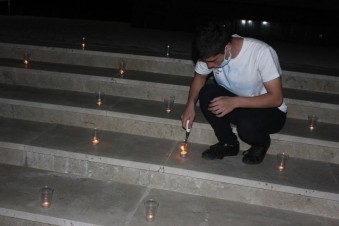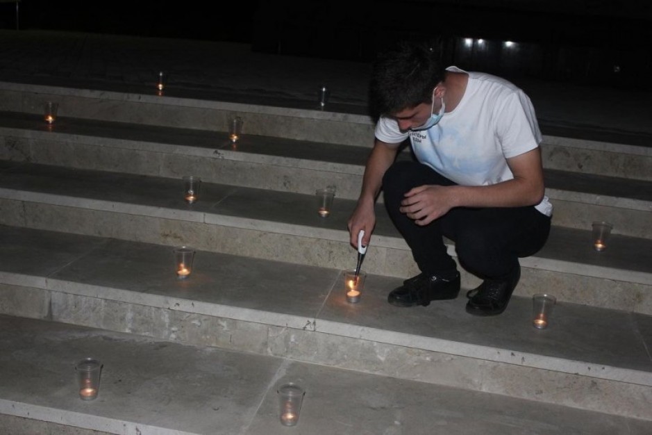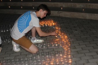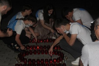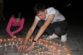 На Мемориале Славы свечами выложили инсталляцию памятника семи братьям Газдановым, скорбящую мать и семь журавлей олицетворяющих погибших сыновей.