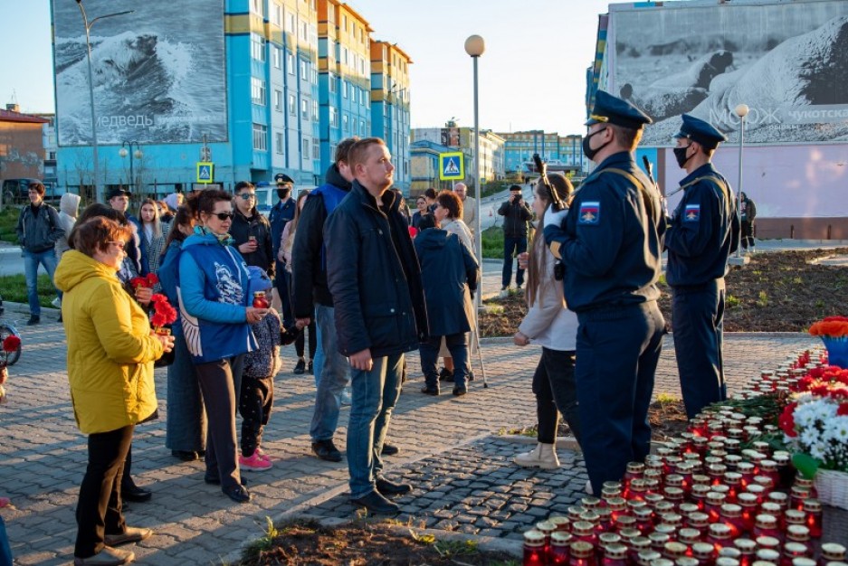 Горожане, представители Правительства и Думы Чукотского автономного округа, мэрии города, военнослужащие и общественники почтили память тех, чьи жизни унесла или искалечила война. Активисты Волонтёров Победы раздавали зажжённые свечи участникам митинга-концерта. Под звуки «Реквиема» они проследовали к мемориалу «Чукотка - фронту», где возложили цветы и поставили лампады в память о 27 миллионах погибших в Великой Отечественной войне.