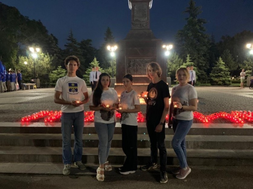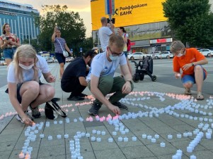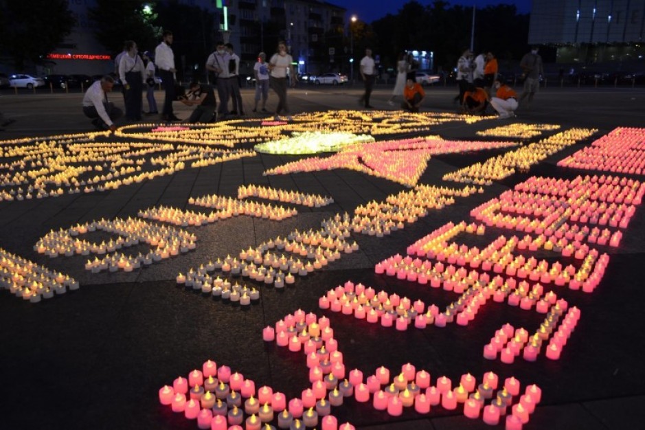На Главной городской площади города Краснодара Волонтеры Победы и представители различных общественных организаций зажгли 10 000 свечей, сложенных в единую картину в виде Мемориального комплекса кубанцам, погибшим в борьбе за Родину. В акции приняли участие все неравнодушные к памятной дате жители и гости города.