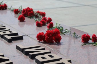 Присутствующие почтили память павших минутой молчания и возложили цветы к Вечному огню.