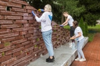 Руководитель направления «Великая Победа» в Московской области Анастасия Юрченко и Волонтёры Победы в Звёздном городке привели в порядок местный мемориал.