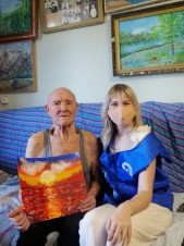 Волонтеры Победы города Отрадный побывали в гостях у ветерана Великой Отечественной войны Ивана Ильича Солохина. В свои годы Иван Ильич полон сил и духа, шутит и рассказывает много трогательных историй, пишет свою книгу, печатает сам в ноутбуке! А еще раньше он рисовал картины, и некоторые работы он подарил городскому музею.