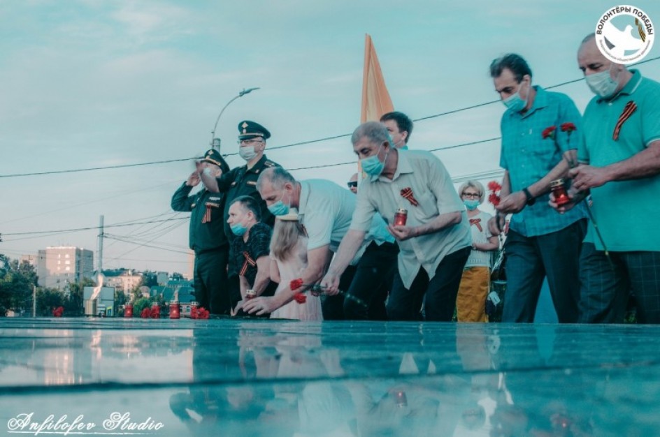 В 4:00 жители города Иваново на мемориале «Героям фронта и тыла» зажгли свечи в память о погибших в годы Великой Отечественной войны и возложили цветы.