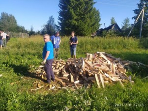 Волонтеры навестили Ольгу Ивановну, разобрали дрова и построили поленницу.