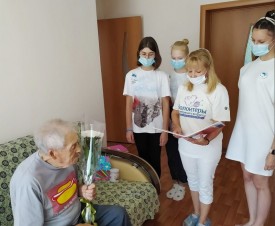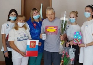 Поблагодарив за рассказ, волонтеры еще раз поздравили юбиляра с днем рождения, за мирное небо над головой, вручили цветы, подарки от администрации города и волонтеров.