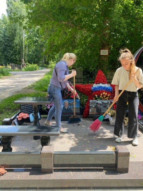 Активисты МБОУ СОШ 85 организовали уборку могилы Героя России Филипова Романа, братской могилы номер 4 на Коминтерновском кладбище, а также убрали территорию около бюста Героя России Филипова Романа в парковой зоне школы.