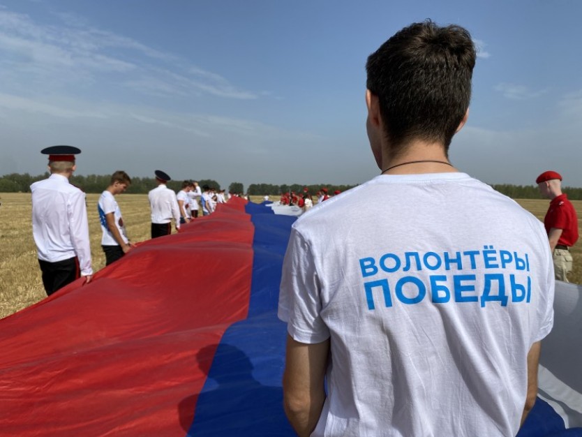 Волонтёры Победы поучаствовали в федеральной акции «От Калининграда до Камчатки», приуроченной ко Дню Государственного флага России. В рамках акции молодые люди развернули главный символ страны размером 50х30 метров.