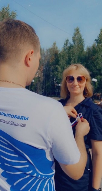 22 августа в День Государственного флага РФ Волонтеры Победы Югры стали организаторами и участниками мероприятий разного формата. Активисты разворачивали большие полотна флага, участвовали в велопробегах , распространяли информационные листовки о знаменательной дате и символе государства, поздравляли югорчан, вручая ленточки триколор.