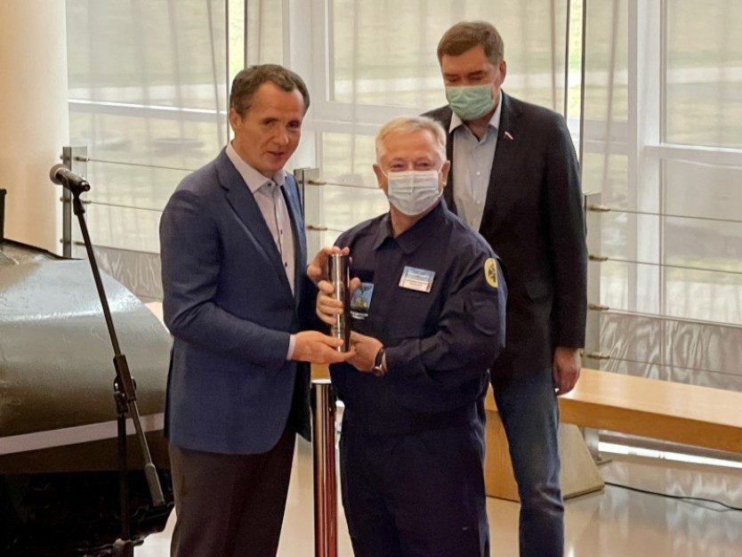 В событии принял участие глава региона Вячеслав Гладков. А на улице у музея в это время прохоровские волонтёры развернули копию Знамени Победы размером более 180 кв.метров. Именно оно будет развиваться за самолётом, который доставит землю Третьего ратного поля России во Ржев и другие города по пути следования «Перелёта памяти». Напомним, патриотическая акция «Перелёт памяти. Мемориалы-побратимы» свяжет Ржев и Прохоровку.