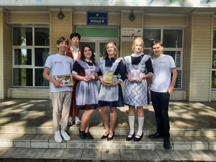 Кроме этого выпускники подарили ветеранам и вдовам небольшие продуктовые наборы и букеты цветов и поблагодарили героев войны за спокойную и мирную жизнь, за возможность учиться и жить в свободной стране.
