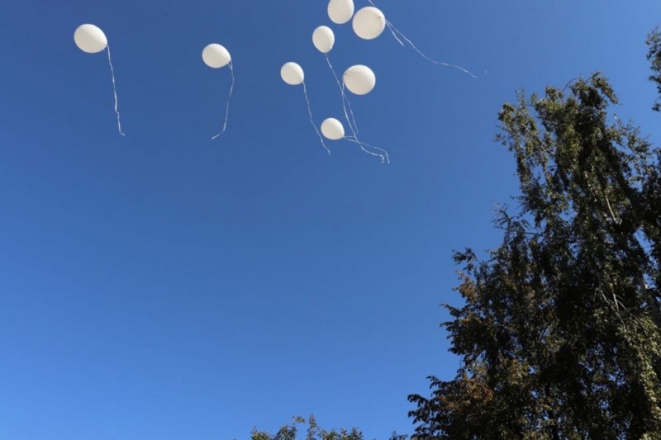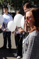 Акция прошла в сквере на пересечении проспекта Красноармейского и улицы Молодежной. Волонтёрами были запущены в небо 16 белых шаров в память о тех, кто погиб в этой страшной трагедии.