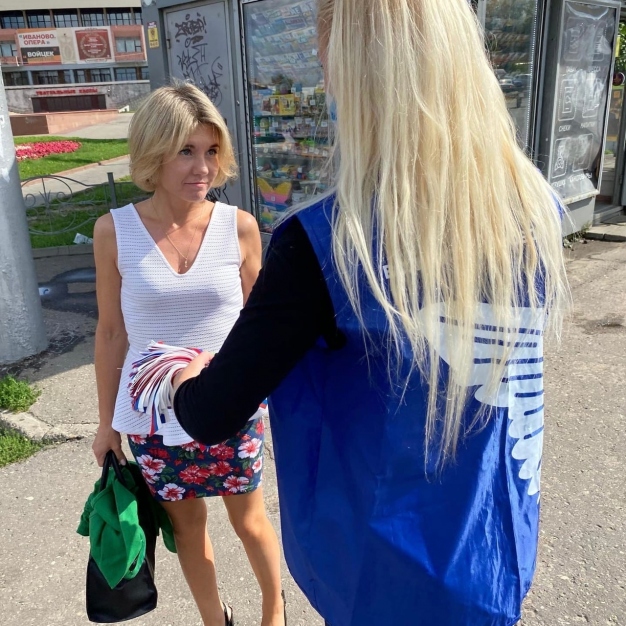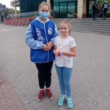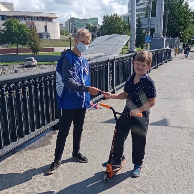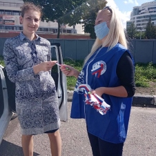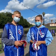 В рамках акции, в центре города добровольцы раздавали ленточки-триколор, рассказывая жителям об истории праздника.