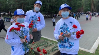Волонтеры Победы нашего региона помогли в раздаче гвоздик для возложения, а также контролировали соблюдение санитарно- эпидемиологических норм.
