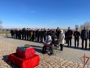 На церемонии прощания поисковики передали в семью Героя платочек с вышивкой, также чудом сохранившийся в его гимнастерке. Теперь он станет семейной реликвией.