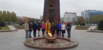 По традиции участники поездки вместе с Волонтерами Победы Кыргызстана возложили цветы к Вечному огню на площади Победы в Бишкеке и к Памятнику советским воинам, погибшим в годы Великой Отечественной войны в городе Чолпон-Ата.