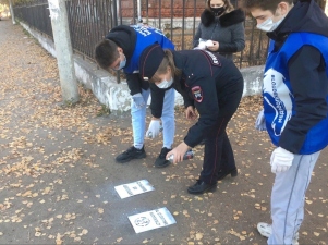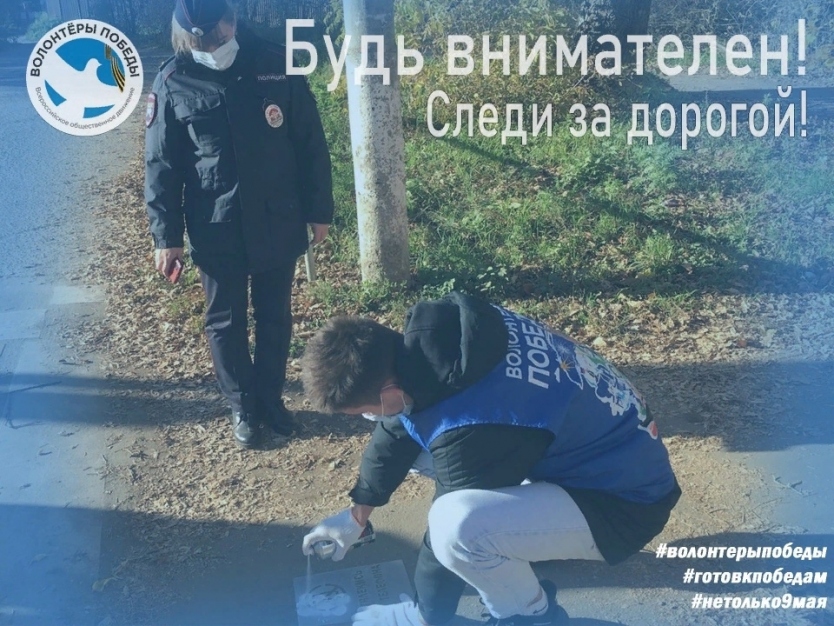 Специалисты комитета по социальной и молодежной политике администрации Кинешмы совместно с «Волонтерами Победы» при участии инспектора ОГИБДД МО МВД России «Кинешемский» Елены Лысовой провели акцию «Трафарет безопасности».