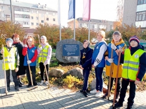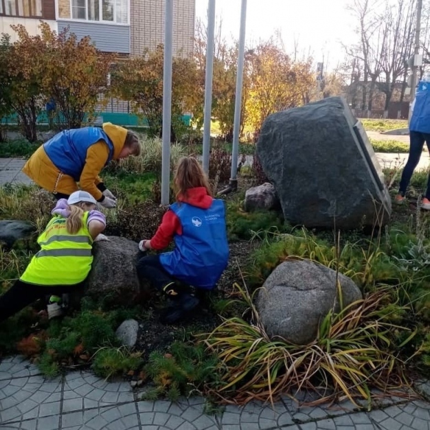 Ребята из средней школы №2 убрали опавшую листу возле памятного знака труженикам, собрали мусор и привели клумбу в порядок. Уборка была организована по инициативе юных волонтеров из отряда местной школы.