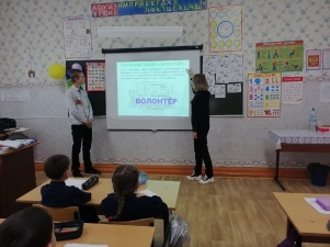 - В МКОУ «Новохоперская ООШ» № 65 прошёл классный час на тему «Кто такие волонтёры?». «Волонтёры Победы» рассказали ребятам откуда появилось слово «волонтёр». Также целью классного часа было сформировать у детей представление о волонтёрском движении, о его основных направлениях.