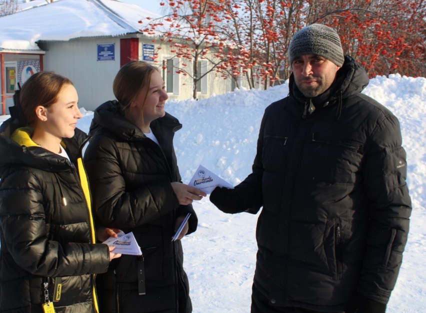 В ЗАТО Сибирский Волонтёры Победы также пообщались с жителями. Они задавали им вопросы о Героях и их подвигах, а в память вручали письма-треугольник с более подробной информацией о них.