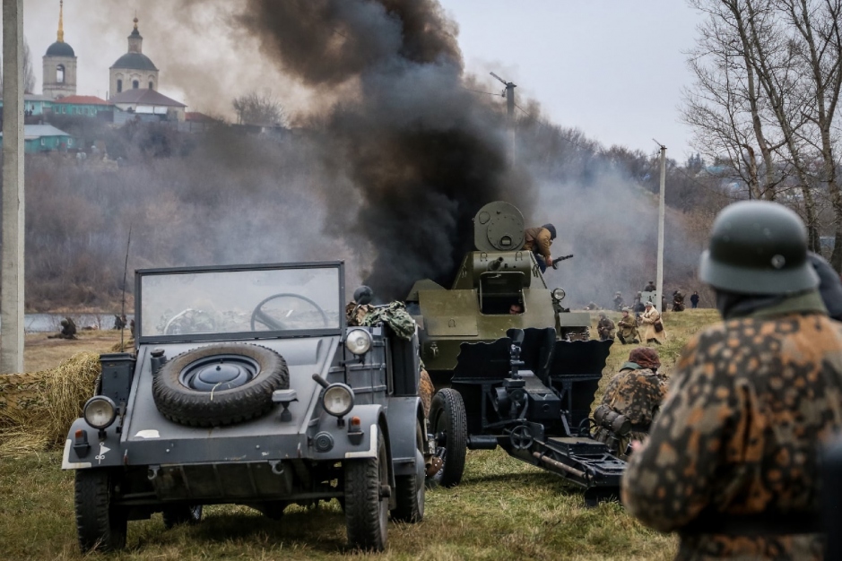 В городе Елец на набережной реки Быстрая Сосна устроили масштабную реконструкцию и воссоздали события 80-летней давности, когда советские войска от глухой обороны на подступах к Москве смогли перейти в контрнаступление.