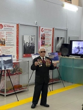 Выставку "Арктические рубежи Победы" представили мурманчане Наталья Смирнова и Валентин Юрченко. К участникам встречи обратился ветеран ВОВ Анатолий Григорьевич Старцев с просьбой: "помнить события этой страшной войны, о миллионах погибших и пропавших без вести ради Победы"