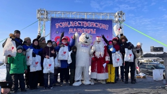 На сцене шла концертная программа - выступления коллективов и исполнителей, викторины и конкурсы от партнеров. В гости с поздравлениями пришел дед Мороз и Снегурочка.