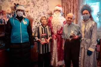 Акция «С Новым годом, ветеран!» стала хорошейтрадицией, которая объединяет не только сотни неравнодушных волонтёров, но и представителей коммерческой сферы. К поздравлению фронтовиков и участников войны присоединился «Торговый дом «Арктика». Компания предоставила Движению термосы для более 180 ветеранов. А Волонтёры Победы, переодевшись в костюмы Деда Мороза и Снегурочки, отправились в гости к Героям, чтобы поздравить их с праздниками и вручить подарки.