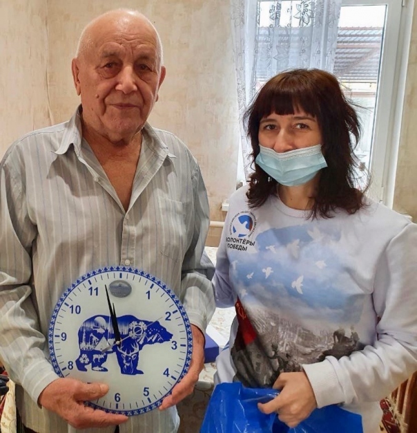 Волонтёры поздравили и Сидорова Ивана Максимовича, участника сражений на Курской дуге — там он был контужен, но после лечения вновь принял участие в боевых наступательных операциях. Участвовал в боях за освобождение Чехословакии, где встретил праздник Победы. После войны Иван Максимович продолжил свою карьеру в военно-морском флоте. Проходил службу на Балтийском и Тихоокеанском морских флотах.