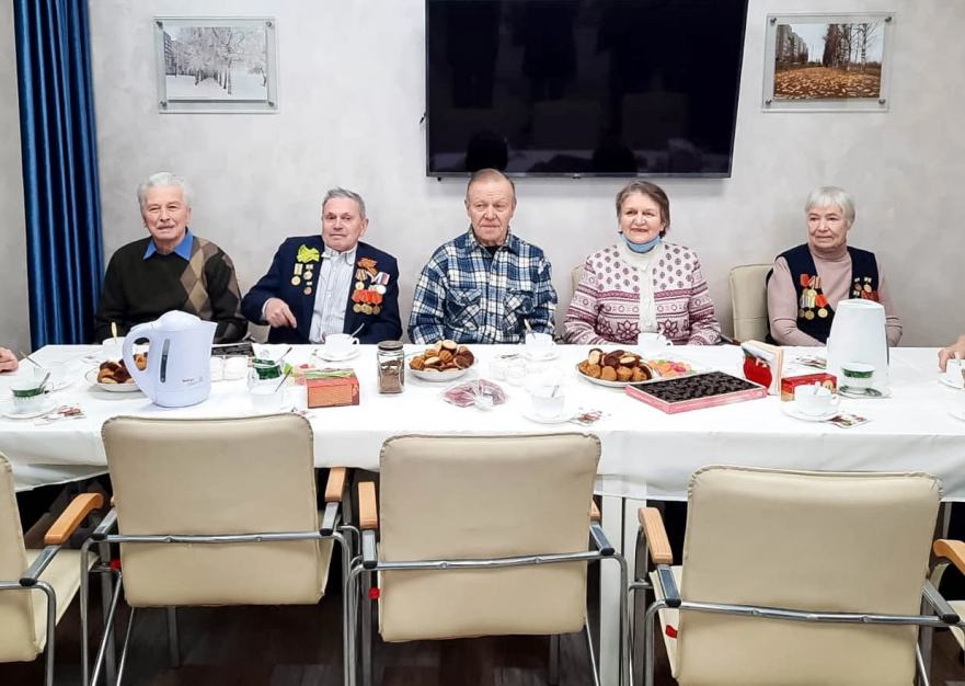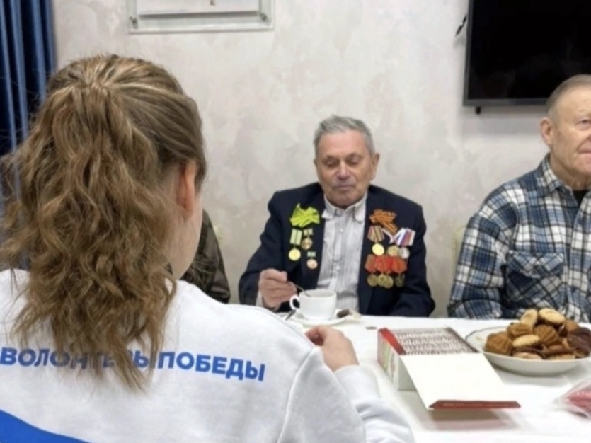 За чашкой чая ветераны рассказали о своей жизни, а волонтеры поздравили их с праздником - Днем полного освобождения Ленинграда.
