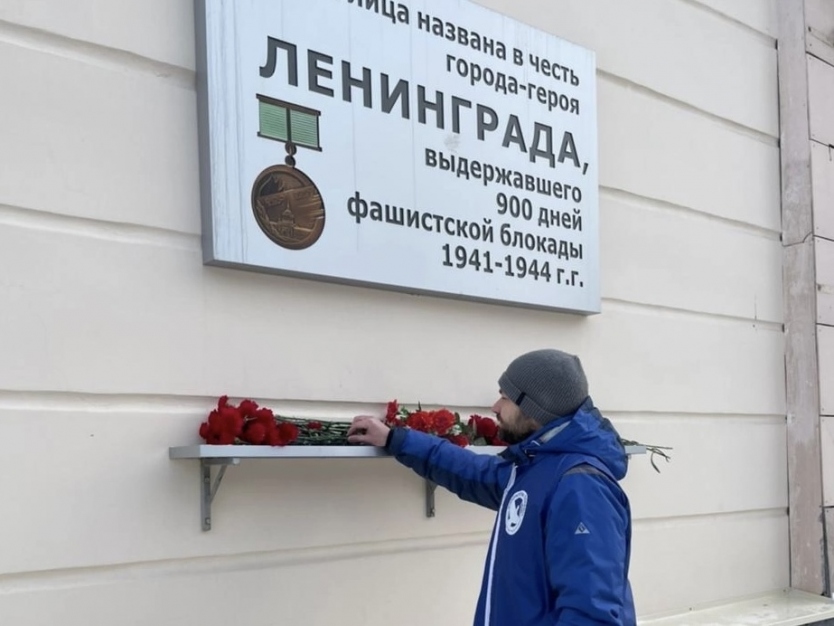 На улице Ленинградской у памятной таблички Волонтеры Победы вспомнили жителей и защитников несломленного города.
