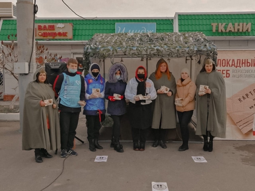 Волонтеры Победы совместно с сотрудниками Молодежного центра города провели Всероссийскую акцию «Блокадный хлеб». Ключевым символом акции является кусочек хлеба весом в 125 граммов — именно такая минимальная норма выдачи хлеба была установлена зимой 1941/1942 года в блокадном Ленинграде.