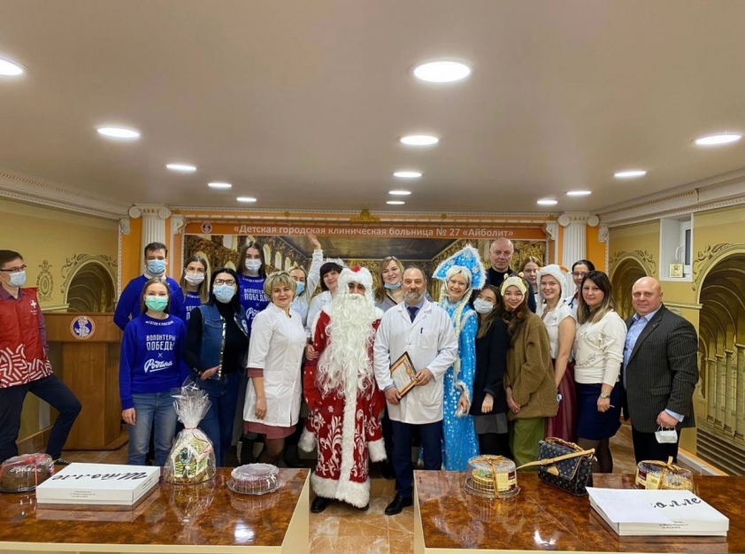 «Волонтеры Победы» и представители ВОД «Волонтеры-медики» в Нижегородской области побывали в детской городской больнице №27 «Айболит» и отделении детской онкологии Нижегородской областной детской клинической больницы, где поздравили с наступившими праздниками коллективы медработников и их пациентов. Волонтеры в костюмах Деда Мороза и Снегурочки вручили врачам и детям торты и пироги, а также вместе с юными пациентами прочитали стихи и спели новогодние песни.