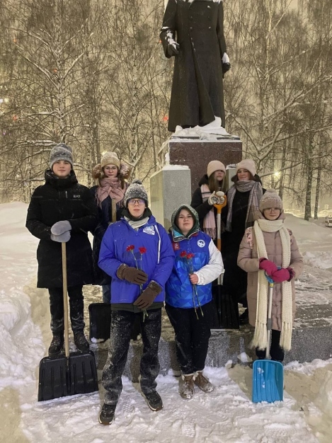 Также волонтеры возложили цветы к памятнику почистили от снега и прилегающую к нему территорию.