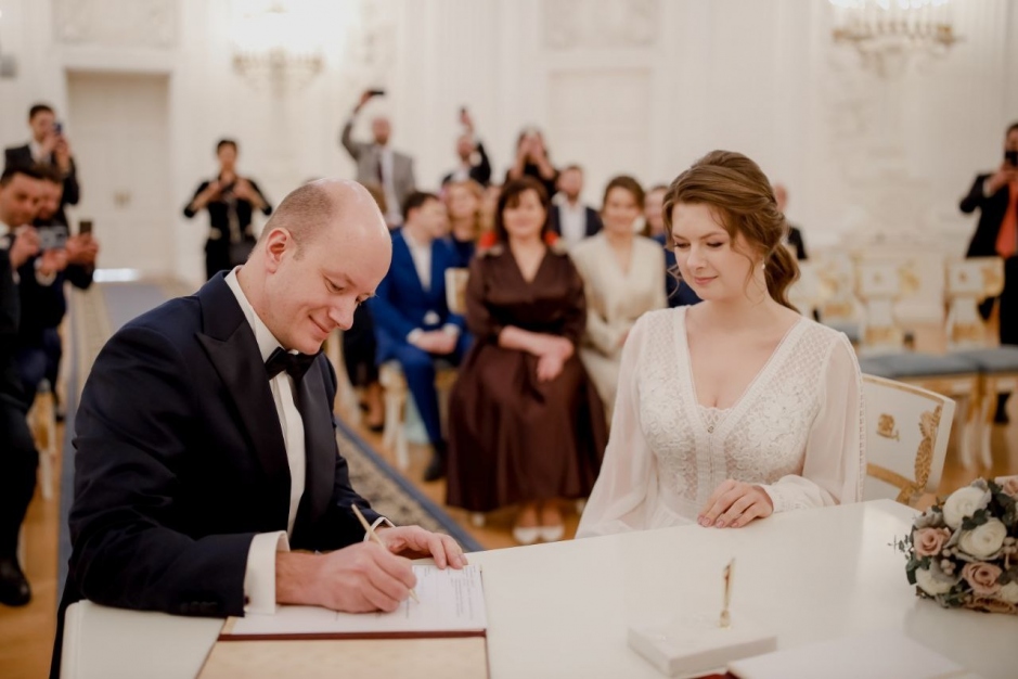Торжественная церемония состоялась в Москве, в Петровском Путевом Дворце. С учётом коронавирусной обстановки пара не устраивала пышных торжеств, а ограничилась регистрацией в формате COVID-free в узком кругу близких.