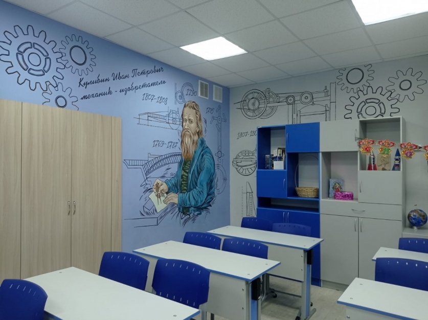 Портрет выдающегося отечественного изобретателя Ивана Кулибина появился в кабинете физики. Автором является нижегородский художник Антон Табатчиков. Коллектив школы выражает огромную благодарность Волонтёрам Победы и автору граффити.