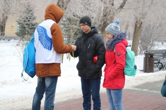 Сегодня, 27 января, Волонтёры Победы вышли на улицы города, чтобы раздать ленточки Ленинградской Победы в честь 75-летия полного освобождения Ленинграда от блокады.