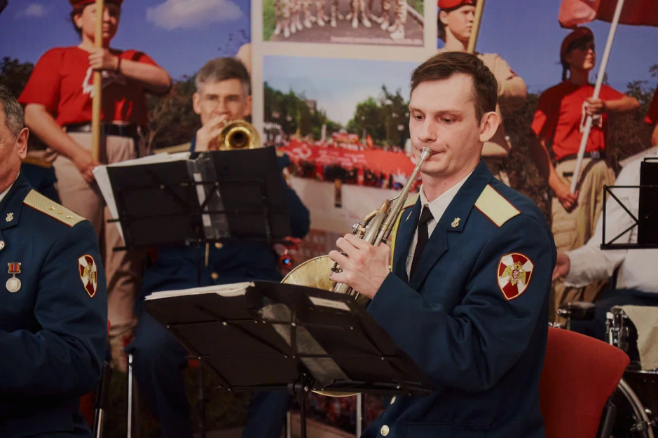 Пришедших ждал сюрприз - неожиданно в холле Дома офицеров развернулся настоящий военный оркестр. Известные композиции «Прощание славянки» и «Севастопольский вальс» восхитили публику