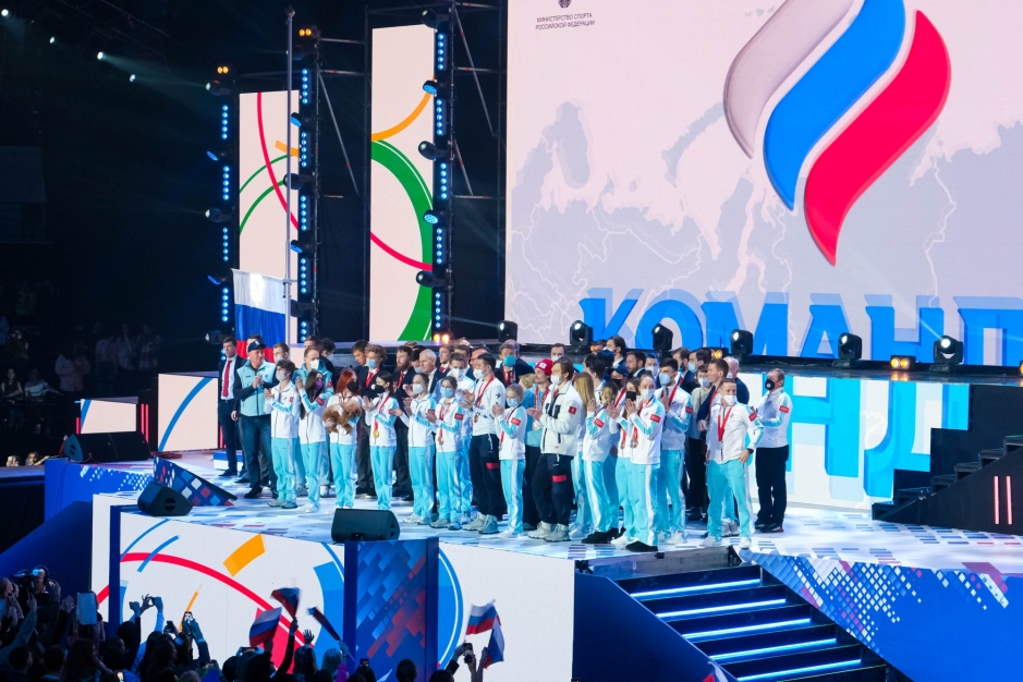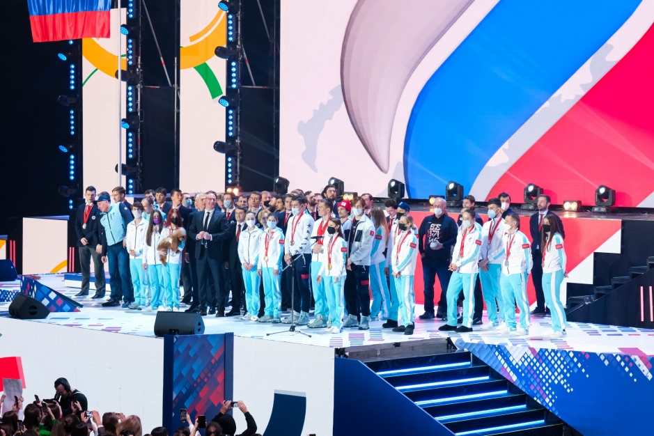 21 февраля в Москве прошло чествование российской команды, которая вернулась с Олимпийских игр в Пекине. Участники Движения «Волонтёры Победы» приняли участие и поддержали наших спортсменов.