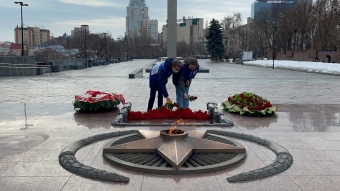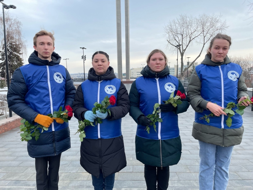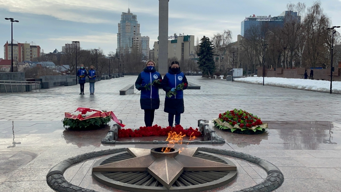 Пусть в этот день и на века сохранится сила духа в наших мужчинах, а небо будет мирным над головами женщин и детей!В преддверии празднования Дня защитника Отечества Волонтеры Победы возложили цветы к Вечному огню у мемориала на площади Победы.